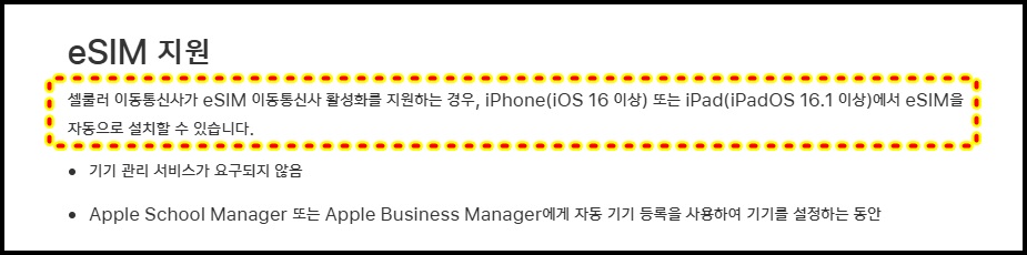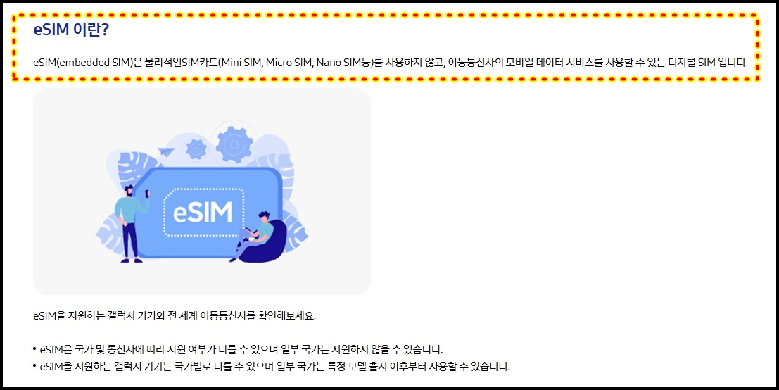 다만 모든 기기에서 가능한 것은 아니기 때문에 esim 지원 기종 확인이 반드시 필요합니다.